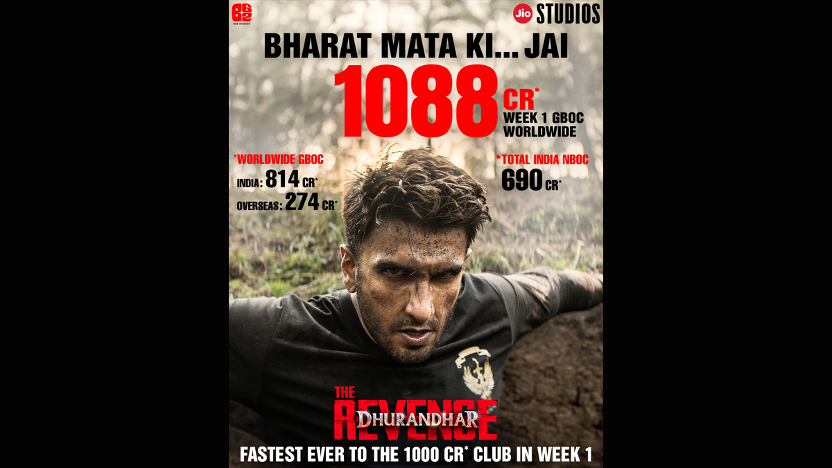 MUMBAI: The box office has a new juggernaut—and it is moving at breakneck speed. Dhurandhar the revenge has smashed past the Rs 1,000 crore mark worldwide in just a week, clocking a staggering Rs 1,088 crore and resetting the rules of the blockbuster game.