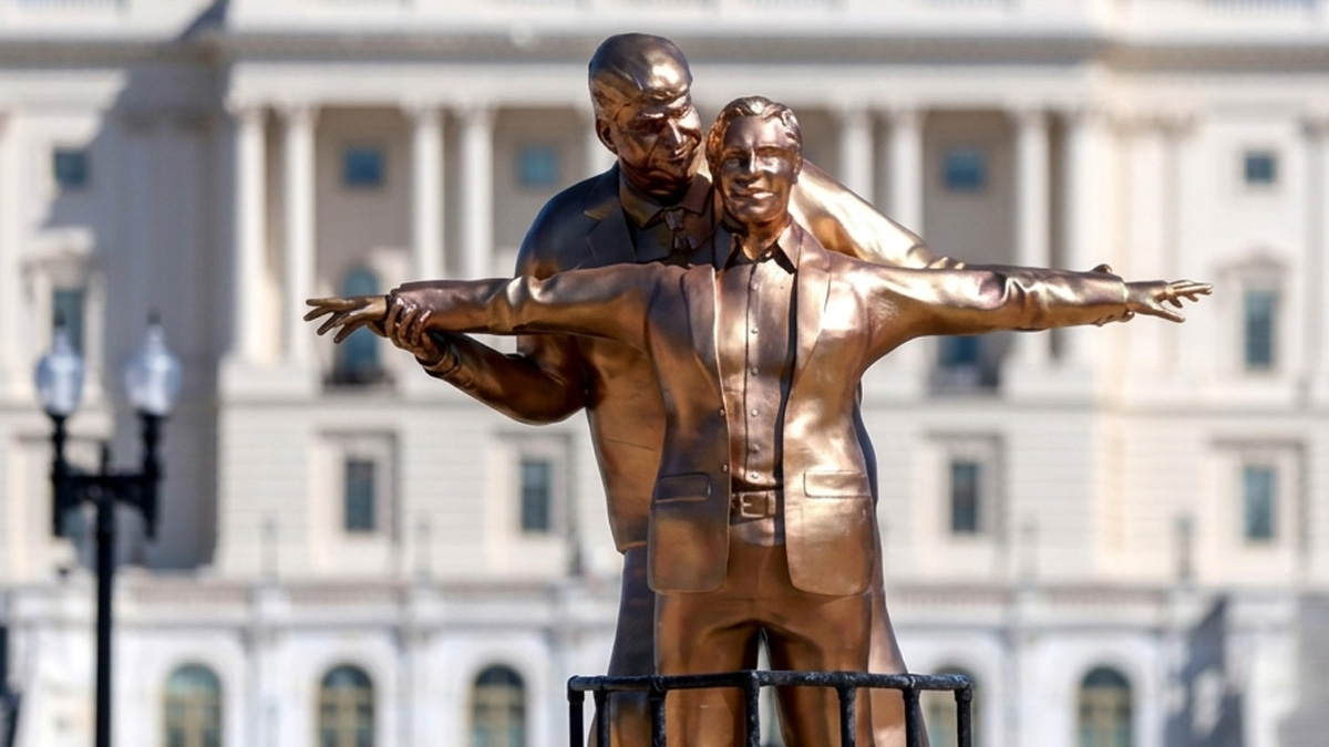 A plaque at the base draws a pointed comparison between the fictional romance aboard the doomed liner and the real-world association between the US president and the disgraced financier. It reads that the story of Jack and Rose unfolded amid “luxurious travel, raucous parties and secret nude sketches”, before noting that the monument honours a friendship seemingly built on much the same ingredients.
